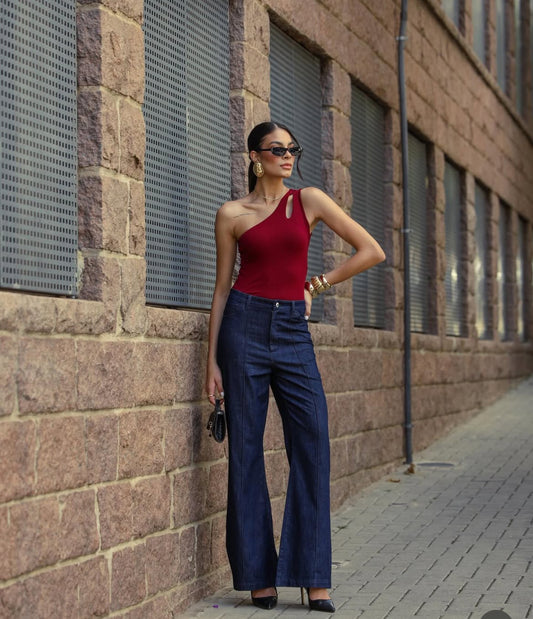 Blusa canelada um ombro