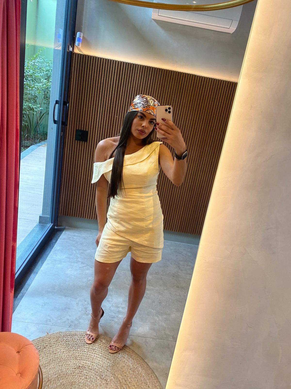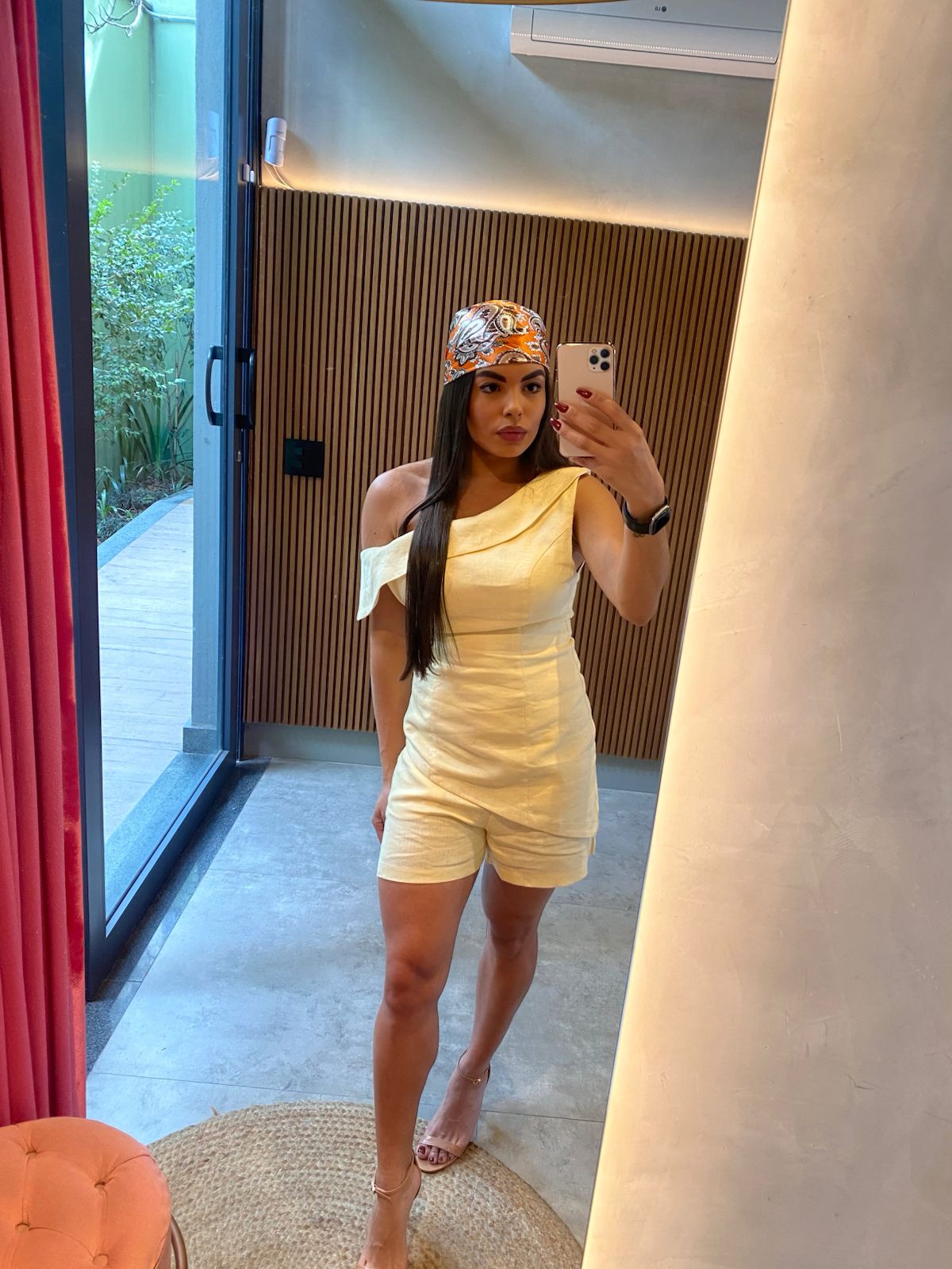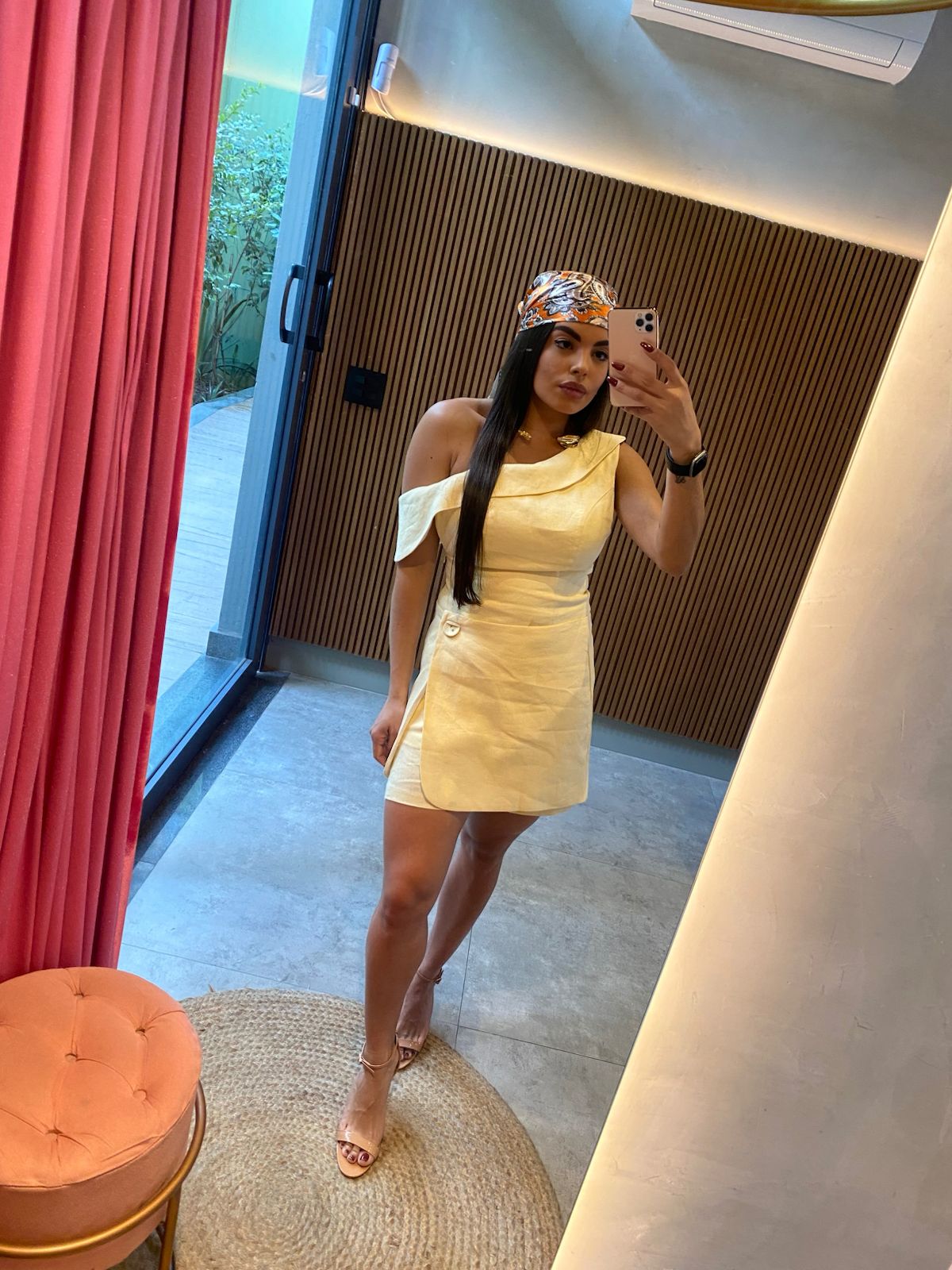 - Modelagem de shape ajustado, decote um ombro só e barra assimétrica