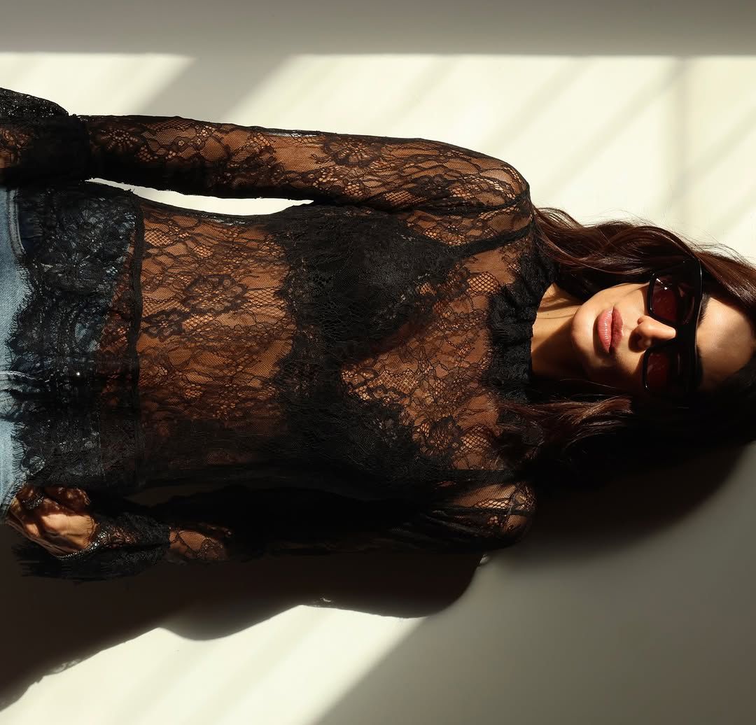 Blusa em renda importada, com transparência delicada e desenho floral sofisticado, que traz um toque elegante e feminino ao look. Possui mangas longas com leve babado nos punhos e gola alta, valorizando a silhueta com um caimento leve e moderno — perfeita para composições estilosas do casual ao sofisticado.
