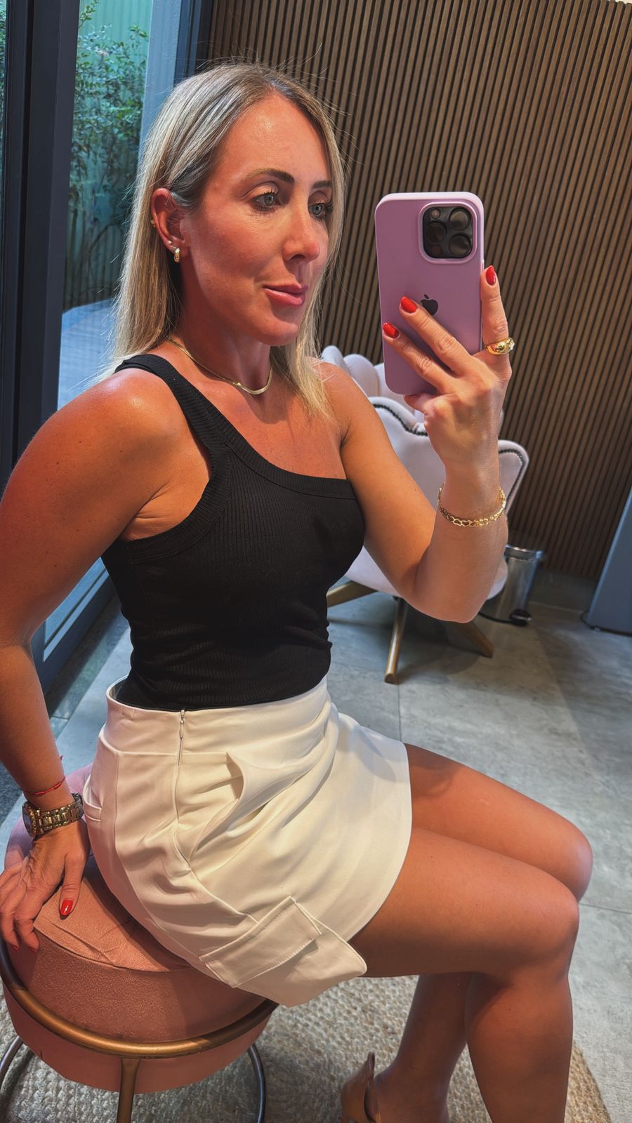 short saia sarjado é confeccionado em tecido sarjado trazendo um visual elegante e moderno. Possui modelagem reta e cintura alta, com bolsos laterais funcionais que acrescentam praticidade garantindo sofisticação e conforto ao mesmo tempo. Uma peça versátil que pode ser usada tanto em produções casuais quanto em combinações mais arrumadas.